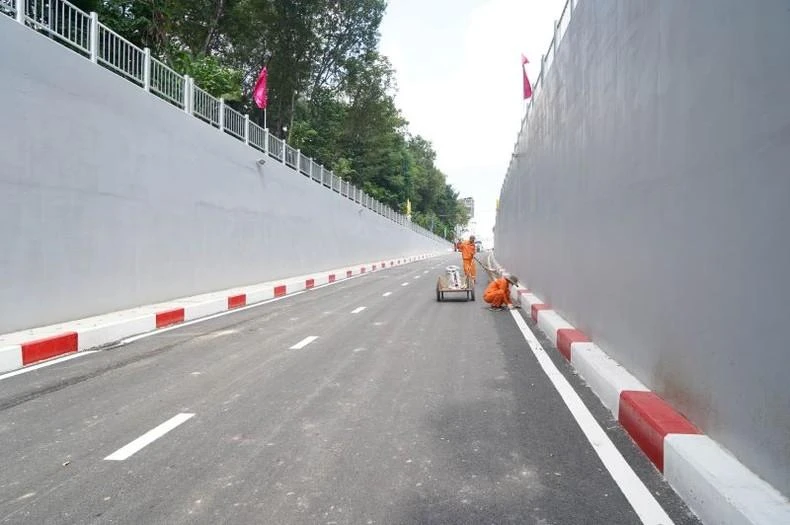 Thông xe hầm chui Trần Quốc Hoàn thuộc Dự án đường nối Trần Quốc Hoàn - Cộng Hòa (quận Tân Bình), Thành phố Hồ Chí Minh chiều 10/8. (ẢNH: QUÝ HIỀN)