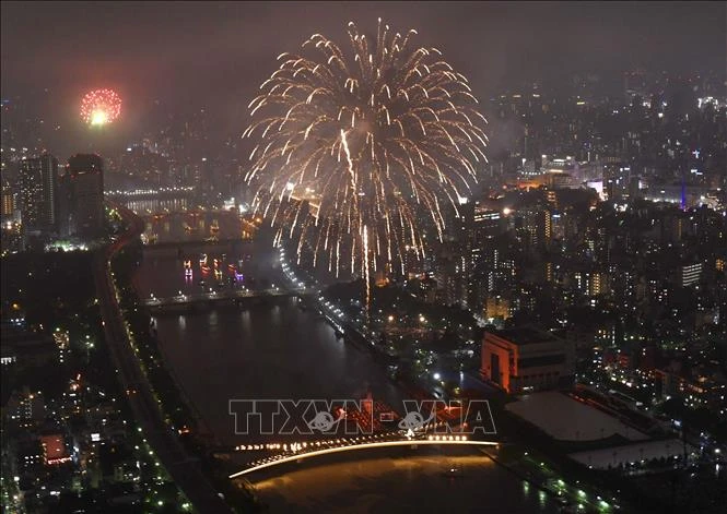 Pháo hoa rực rỡ trong lễ hội trên sông Sumida ở thủ đô Tokyo, Nhật Bản. Ảnh minh họa