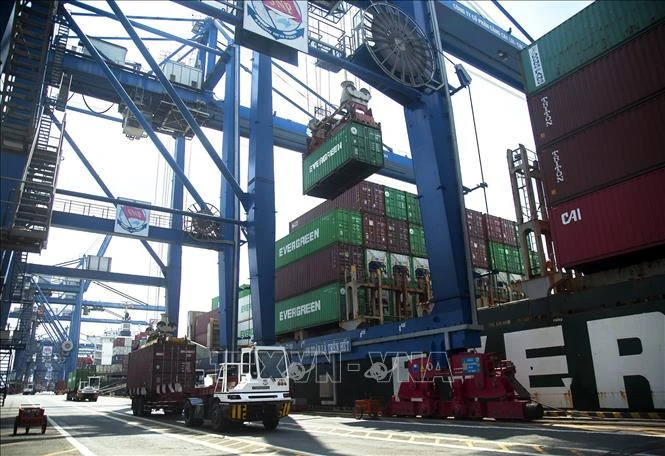 Bốc dỡ hàng hóa xuất khẩu tại Tân Cảng Cát Lái, thành phố Thủ Đức.