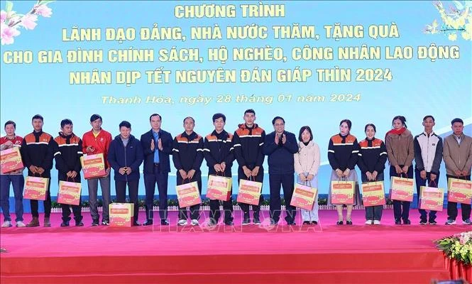 Thủ tướng Phạm Minh Chính đến dự "Ngày hội công nhân - Đón chào Xuân mới" 2024, được tổ chức tại Khu công nghiệp Hoàng Long, thành phố Thanh Hoá.