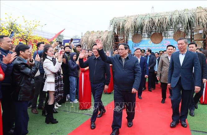 Thủ tướng Phạm Minh Chính với công nhân, người lao động tại "Ngày hội công nhân - Đón chào Xuân mới" 2024.