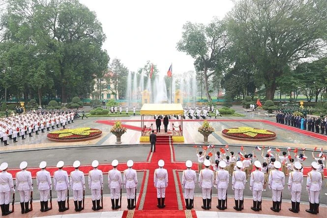 Quang cảnh Lễ đón Thủ tướng Cộng hòa Séc Petr Fiala thăm chính thức Việt Nam.