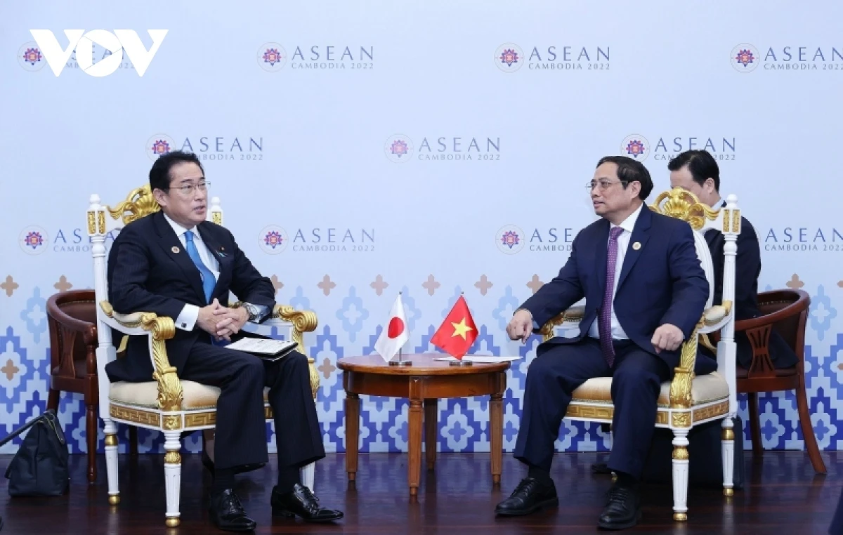Việt Nam cũng mong muốn cùng Nhật Bản và cộng đồng quốc tế nỗ lực đóng góp vào duy trì hòa bình, ổn định và hợp tác trong khu vực; tôn trọng Hiến chương Liên Hợp Quốc và luật pháp quốc tế; thúc đẩy liên kết kinh tế khu vực, kết nối cơ sở hạ tầng, nhất là ở Đông Nam Á và tiểu vùng Mê Công, hợp tác phát triển kinh tế số, kinh tế xanh, kinh tế tuần hoàn, bảo vệ môi trường, chống biến đổi khí hậu, bảo đảm an ninh năng lượng, an ninh lương thực.