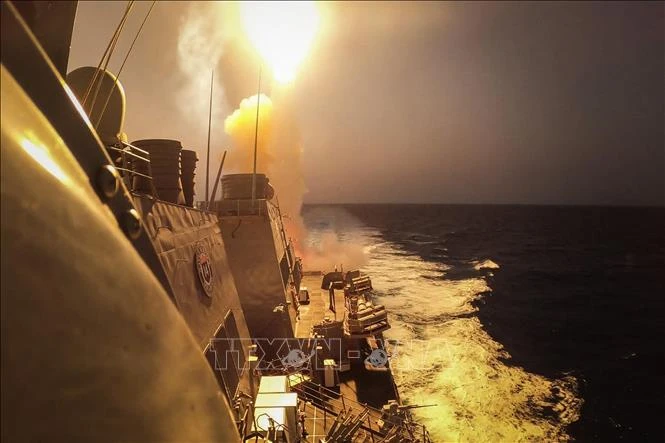 Tàu khu trục gắn tên lửa dẫn đường USS Carney của Mỹ đánh chặn tên lửa và thiết bị không người lái của lực lượng Houthi trên Biển Đỏ.