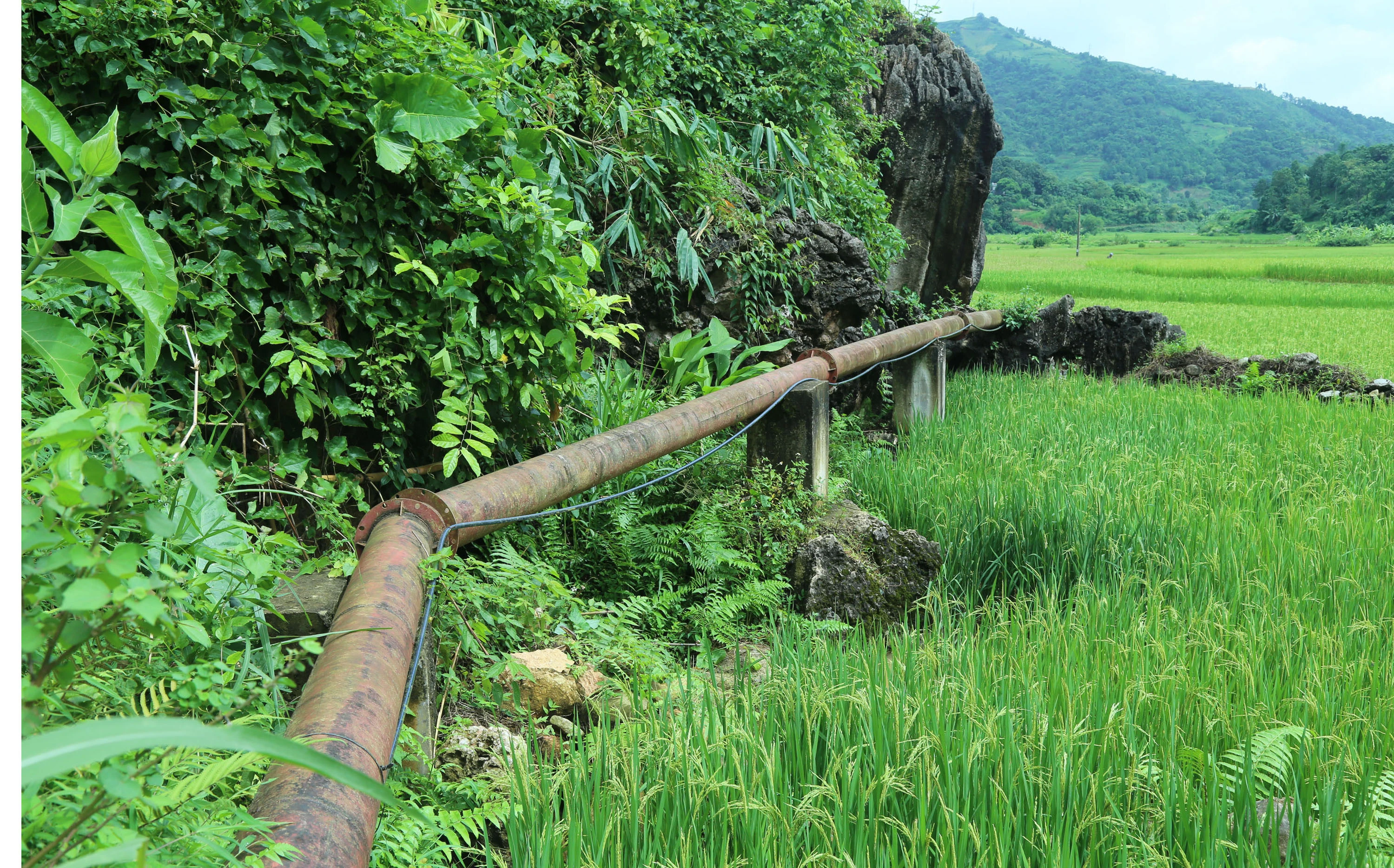 | Hệ thống thủy lợi được đầu tư giúp nhiều cánh đồng ở Mường Vi có thể cấy 2 vụ lúa Séng cù/năm. |