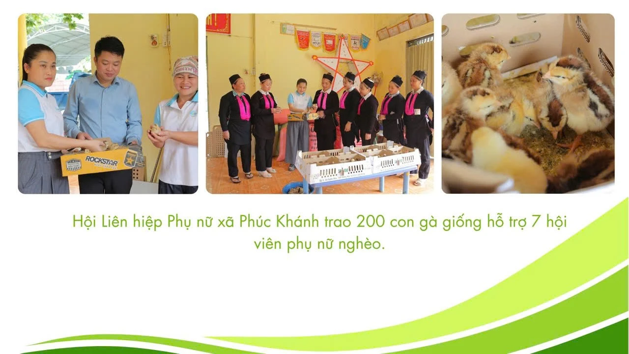 Tại xã Phúc Khánh, Hội Phụ nữ xã đã triển khai nhiều hoạt động thiết thực chăm lo cho phụ nữ nghèo, có hoàn cảnh khó khăn, như hỗ trợ làm đường, chỉnh trang nhà cửa cho hội viên khó khăn, tiêu biểu là gia đình chị Hoàng Thị Hiền ở thôn Làng Đẩu.