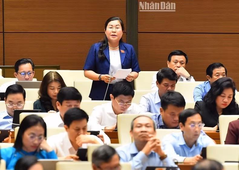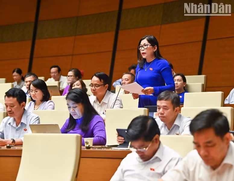 Đại biểu Nguyễn Thị Minh Trang - Đoàn đại biểu Quốc hội tỉnh Vĩnh Long phát biểu.