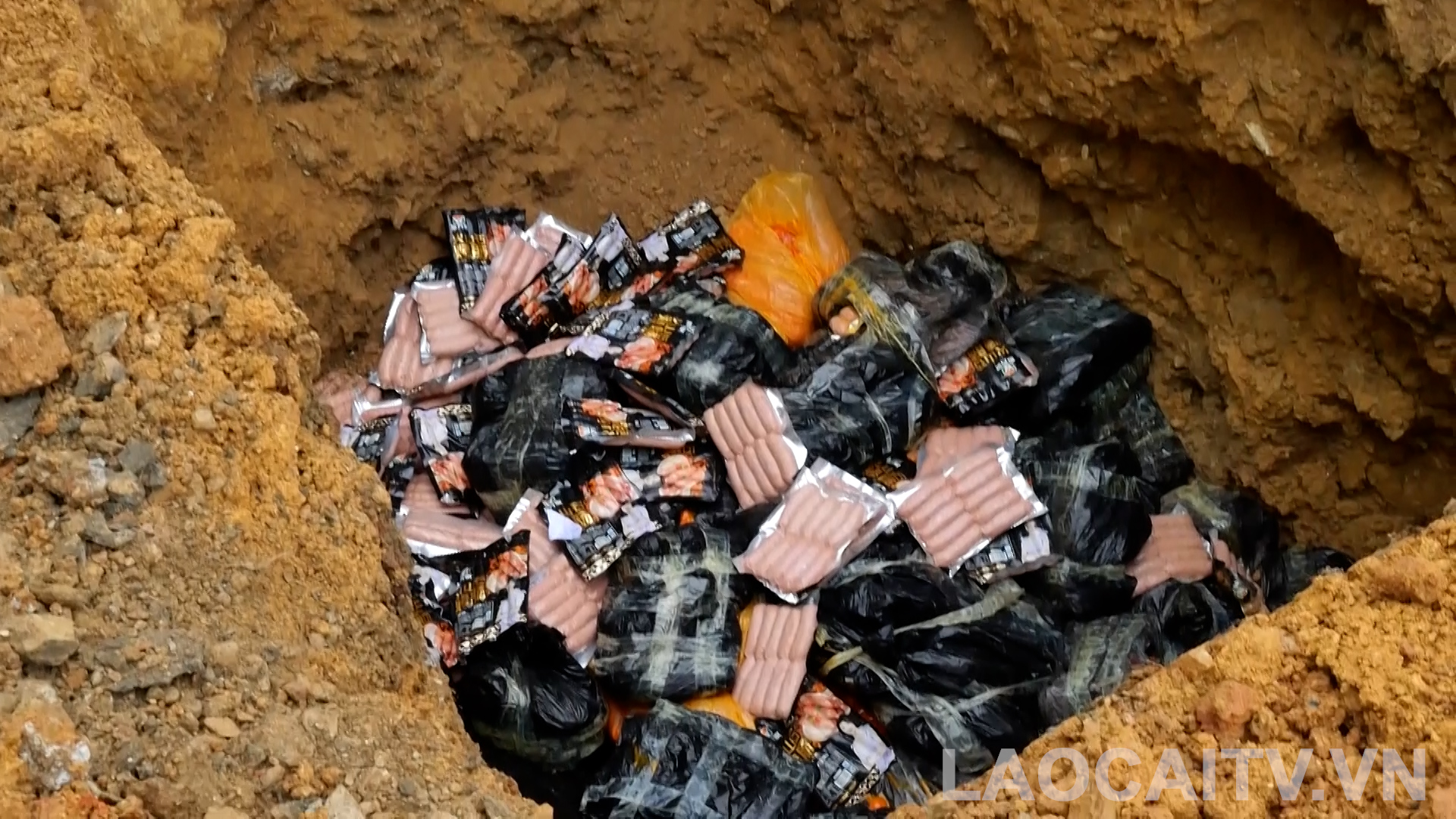 Trước đó, trong tối ngày 23/5, tổ công tác thuộc Hải quan cửa khẩu Lào Cai chủ trì, phối hợp với Trạm Biên phòng Cửa khẩu Quốc tế Lào Cai tuần tra, kiểm soát hàng hóa nhập khẩu tại Cửa khẩu Quốc tế đường bộ Lào Cai. Qua tuần tra, lực lượng chức năng đã phát hiện 2,55 tấn xúc xích, lạp xưởng, trứng gia cầm non… tại khu vực vườn hoa, thuộc khu cách ly Cửa khẩu Quốc tế Lào Cai.