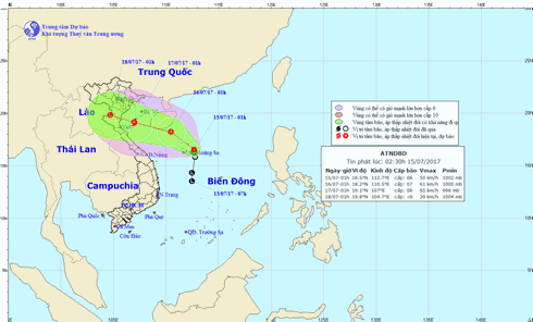Theo Trung tâm dự báo khí tượng thủy văn Trung ương, hồi 1h ngày 15/7, vị trí tâm áp thấp nhiệt đới ở vào khoảng 16,5 độ Vĩ Bắc; 112,7 độ Kinh Đông, ngay trên khu vực vùng biển quần đảo Hoàng Sa. Sức gió mạnh nhất ở vùng gần tâm áp thấp nhiệt đới mạnh cấp 6-7 (40-60km/giờ), giật cấp 8-9.