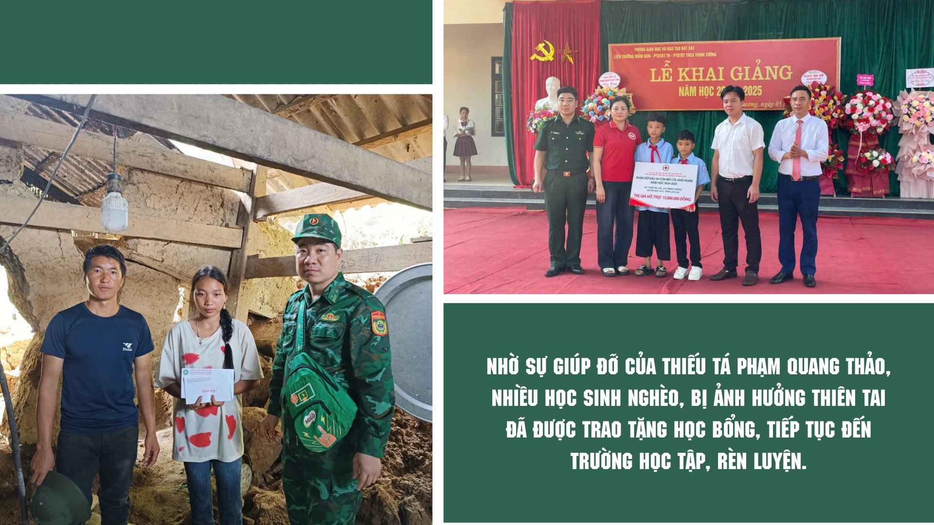 Thiếu tá Phạm Quang Thảo sinh năm 1986 tại Yên Bái. Sau khi tốt nghiệp Học viện Biên phòng, anh được phân công công tác tại tỉnh Lào Cai. Hơn 15 năm công tác ở các đơn vị biên phòng trên tuyến biên giới Lào Cai, “3 bám, 4 cùng” với người dân, anh Thảo được chứng kiến, hiểu hơn những vất vả, khó khăn, thiếu thốn của đồng bào các dân tộc thiểu số khu vực biên giới. Nhớ lời dạy của Bác, bằng tình cảm yêu thương và tấm lòng nhân ái, anh Thảo đã kết nối các nguồn lực để giúp đỡ nhiều trẻ em, gia đình vơi bớt khó khăn, vươn lên trong cuộc sống.