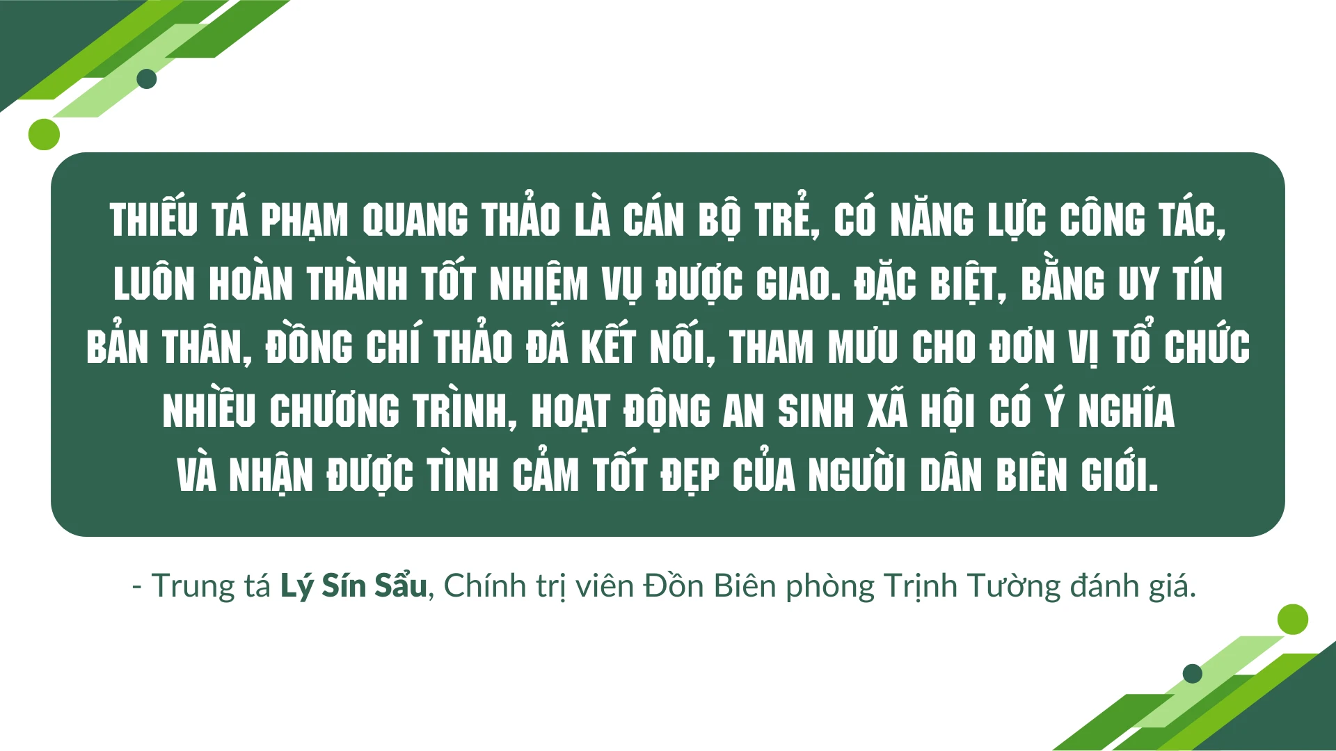 Những việc làm nhân ái, thiết thực của Thiếu tá Phạm Quang Thảo góp phần lan tỏa yêu thương, tô đẹp thêm hình ảnh Bộ đội Cụ Hồ, được Nhân dân tin yêu, ủng hộ.