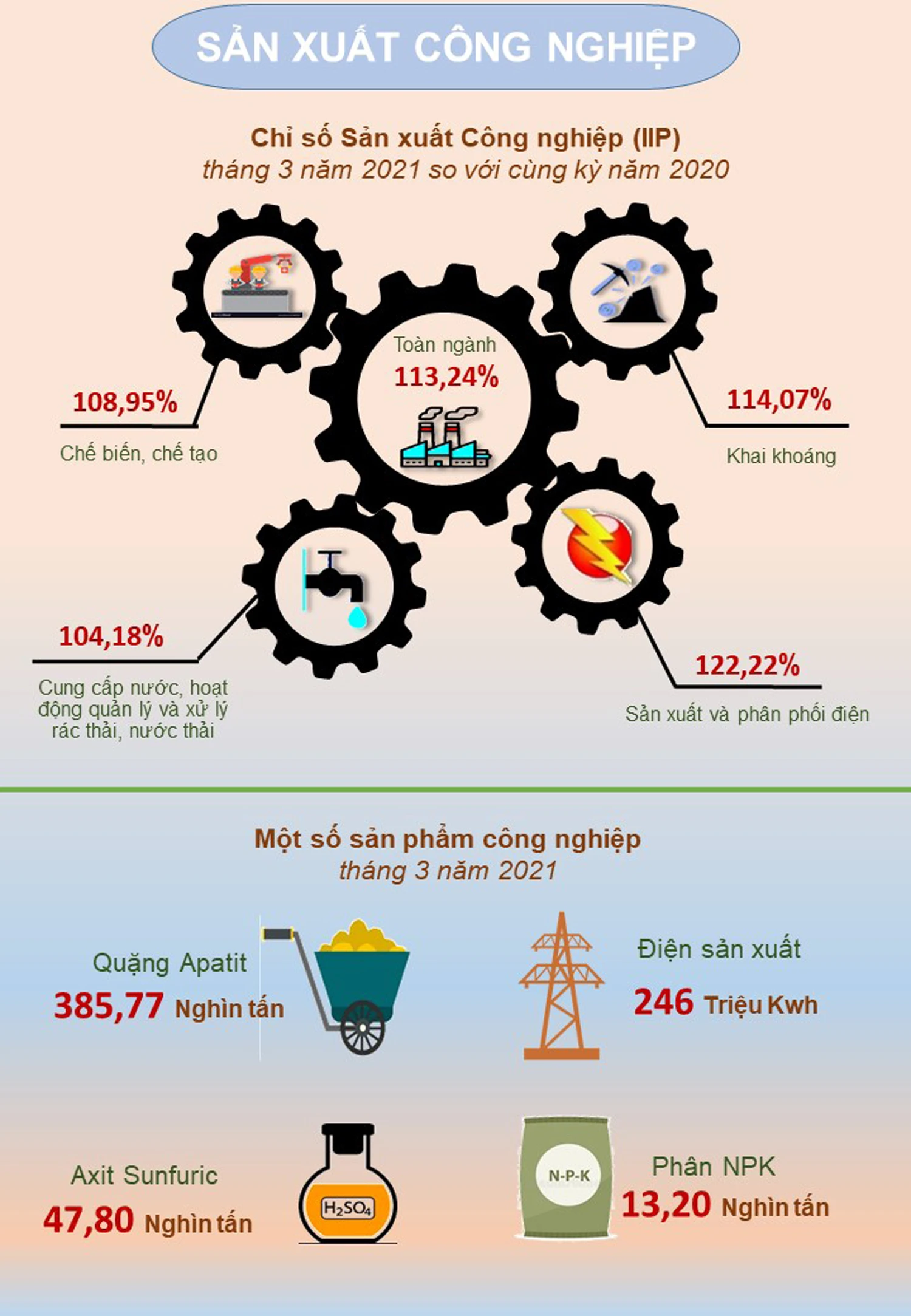 LCĐT - Năm 2021 là năm đầu thực hiện các mục tiêu Nghị quyết Đại hội Đảng bộ tỉnh Lào Cai lần thứ XVI; kế hoạch phát triển kinh tế - xã hội 5 năm (2021 - 2025). Theo đánh giá, bức tranh phát triển kinh tế tỉnh Lào Cai trong quý 1/2021 có nhiều điểm sáng như vốn đầu tư toàn xã hội thực hiện ước đạt 4.584,8 tỷ đồng (tăng 69,43% so với cùng kỳ năm trước); chỉ số sản xuất ngành công nghiệp tăng 13,24% so với cùng kỳ năm 2020…
