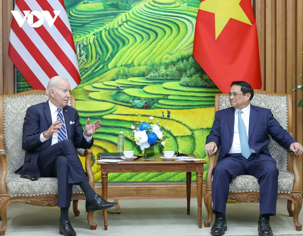 Trước đó, Thủ tướng Phạm Minh Chính hội kiến Tổng thống Joe Biden. Hai nhà lãnh đạo bày tỏ vui mừng về những bước phát triển sâu rộng của quan hệ Việt Nam - Hoa Kỳ trên cả 3 bình diện song phương, khu vực và quốc tế.