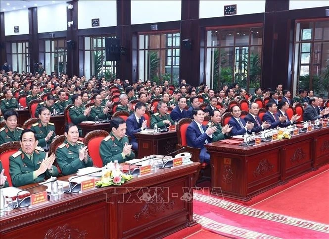 Chủ tịch nước Lương Cường và các đại biểu dự Hội nghị Quân chính toàn quân năm 2024. Ảnh: Lâm Khánh - TTXVN