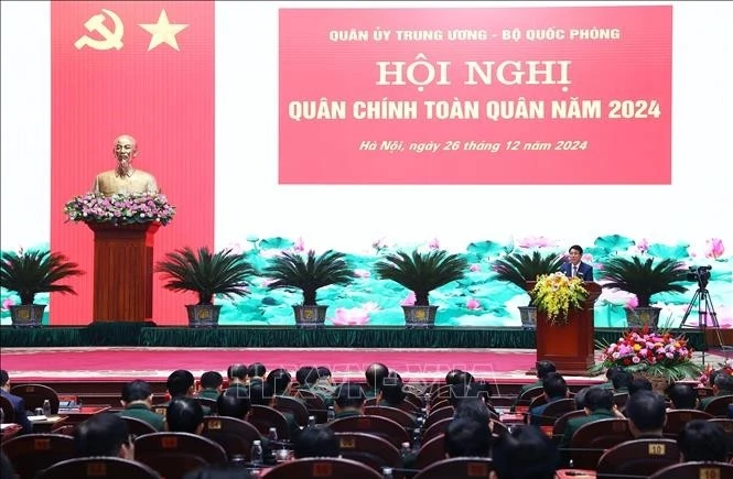 Về phương hướng nhiệm vụ trong năm 2025, Quân ủy Trung ương, Bộ Quốc phòng lãnh đạo, chỉ đạo toàn quân chủ động rà soát chương trình, kế hoạch công tác, quán triệt, thực hiện nghiêm túc, hiệu quả chỉ đạo của đồng chí Tổng Bí thư tại Phiên họp Quân uỷ Trung ương lần thứ 12, “tăng tốc, bứt phá, quyết tâm hoàn thành thắng lợi mục tiêu, nhiệm vụ Nghị quyết Đại hội Đảng bộ Quân đội lần thứ XI”. Trong đó, tập trung nâng cao năng lực nghiên cứu, dự báo, đánh giá tình hình, tham mưu với Đảng, Nhà nước hoạch định đúng đắn chủ trương, sách lược quân sự, quốc phòng đáp ứng nhiệm vụ bảo vệ Tổ quốc cả trước mắt và lâu dài. Đồng thời phát huy sức mạnh tổng hợp, xây dựng, củng cố nền quốc phòng toàn dân vững mạnh, khu vực phòng thủ các cấp vững chắc. Tiếp tục quán triệt, thực hiện nghiêm túc các chủ trương, chỉ đạo của Trung ương về xây dựng, chỉnh đốn Đảng. Chủ động triển khai linh hoạt, thực chất, hiệu quả các hoạt động đối ngoại quốc phòng cả song phương và đa phương. Chủ động, tự lực, tự cường, bảo đảm đầy đủ, kịp thời hậu cần, kỹ thuật cho các nhiệm vụ.