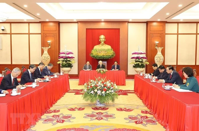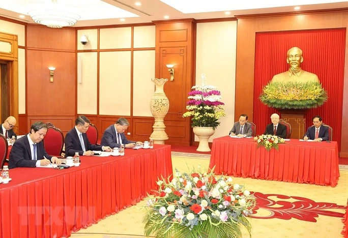 Bày tỏ vui mừng về việc quan hệ Đối tác chiến lược Việt Nam - Pháp tiếp tục phát triển toàn diện, tốt đẹp, Tổng Bí thư Nguyễn Phú Trọng khẳng định hai bên đã tích cực triển khai các nội dung của Tuyên bố chung giữa lãnh đạo hai nước nhân chuyến thăm Pháp của Tổng Bí thư vào năm 2018. Tổng Bí thư nhấn mạnh hai nước chia sẻ quan điểm trên nhiều vấn đề quốc tế quan trọng, có nhiều lợi ích lớn tương đồng và nhiều gắn bó về lịch sử, văn hóa; khẳng định Việt Nam coi trọng và dành ưu tiên cao đối với quan hệ Đối tác chiến lược Việt Nam - Pháp và ủng hộ những sáng kiến của Pháp vì hòa bình, hợp tác và phát triển trong khu vực và quốc tế. Tổng Bí thư trao đổi với Tổng thống Pháp một số phương hướng, biện pháp lớn nhằm mở rộng và nâng cao hiệu quả hợp tác giữa hai nước.