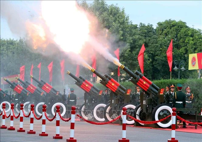 Nghi thức bắn 21 loạt đại bác chào mừng chuyến thăm cấp Nhà nước tới Việt Nam của Tổng Bí thư, Chủ tịch nước Trung Quốc Tập Cận Bình và Phu nhân.
