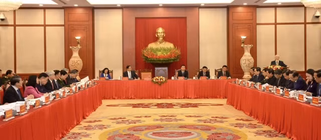 Tổng Bí thư nhấn mạnh, trong quá trình xây dựng các văn kiện Đại hội XIV của Đảng, phải gắn kết nhuần nhuyễn việc nghiên cứu lý luận với tổng kết thực tiễn phát triển trên các lĩnh vực.