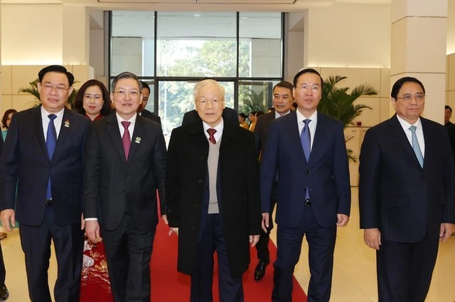 Tổng Bí thư Nguyễn Phú Trọng, Chủ tịch nước Võ Văn Thưởng, Thủ tướng Chính phủ Phạm Minh Chính, Chủ tịch Quốc hội Vương Đình Huệ và các đại biểu đến dự Đại hội đại biểu toàn quốc Hội Nông dân Việt Nam lần thứ VIII, nhiệm kỳ 2023-2028.
