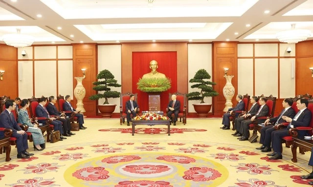 Chiều 11/12, tại Trụ sở Trung ương Đảng, Tổng Bí thư Nguyễn Phú Trọng đã tiếp Đoàn đại biểu cấp cao Chính phủ Vương quốc Campuchia do Thủ tướng, Phó Chủ tịch Đảng Nhân dân Campuchia (CPP) Hun Manet dẫn đầu.