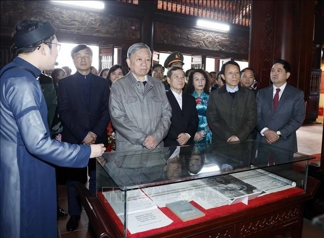 Ngay sau lễ dâng hương, Tổng Bí thư Tô Lâm cùng Đoàn đại biểu đã tham quan khu trưng bày tư liệu, hiện vật, Nhà lưu niệm - nơi gắn bó những năm tháng tuổi thơ của Tổng Bí thư Nguyễn Văn Cừ.