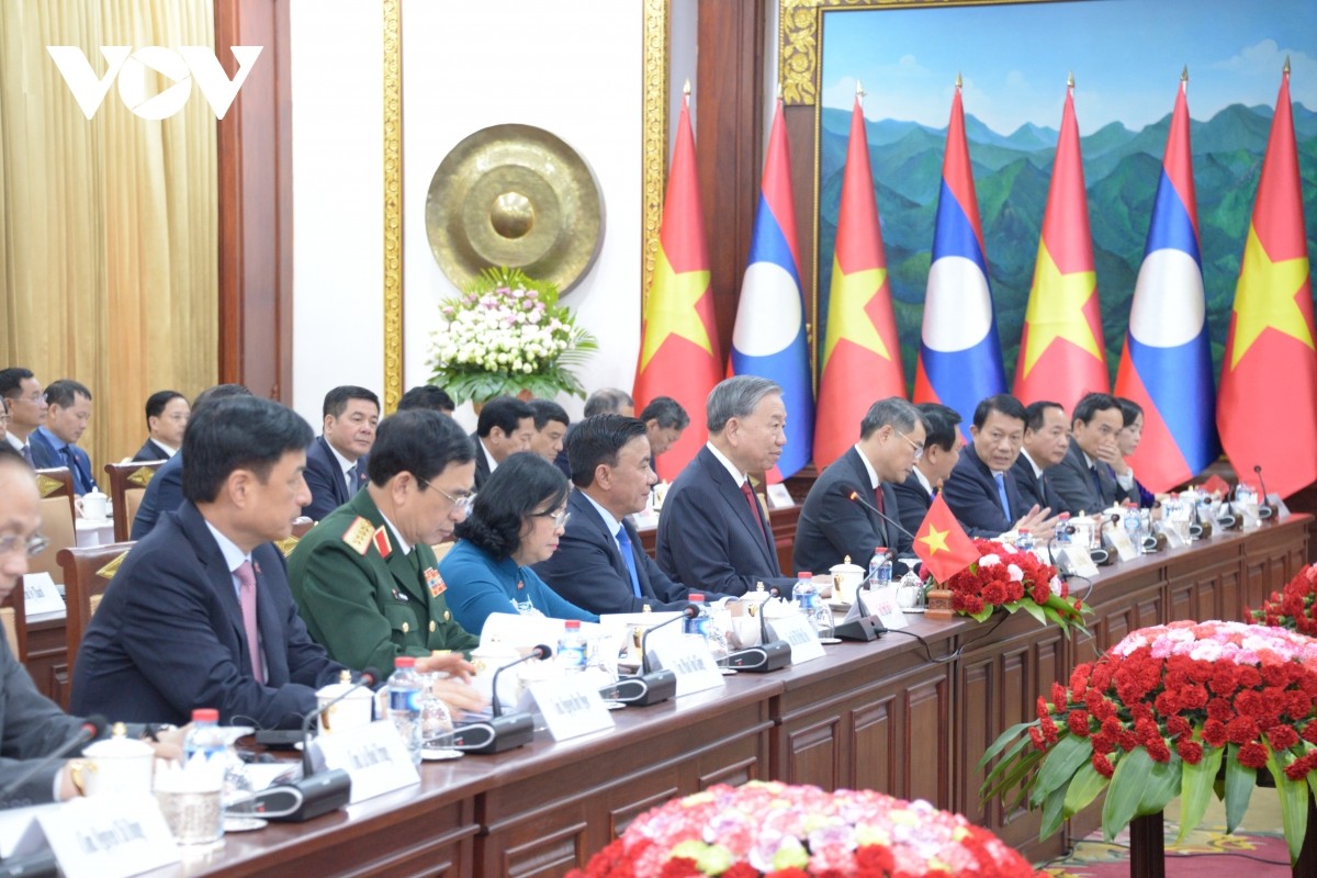 Tổng Bí thư, Chủ tịch nước Lào Thongloun Sisoulith nhiệt liệt chào mừng Tổng Bí thư Tô Lâm và Đoàn đại biểu cấp cao Việt Nam thăm cấp Nhà nước tới Lào; đánh giá cao ý nghĩa quan trọng chuyến thăm thể hiện sự coi trọng của Đảng, Nhà nước Việt Nam và của cá nhân Tổng Bí thư Tô Lâm đối với mối quan hệ hữu nghị vĩ đại, đoàn kết đặc biệt và hợp tác toàn diện Việt Nam – Lào; nhấn mạnh sự có mặt của Tổng Bí thư cùng Phu nhân và Đoàn đại biểu cấp cao Đảng và Nhà nước Việt Nam trong dịp Lào tổ chức ngày lễ trọng đại là niềm vinh dự đối với Đảng, Nhà nước và nhân dân Lào, làm cho Lễ kỷ niệm càng có ý nghĩa sâu sắc.