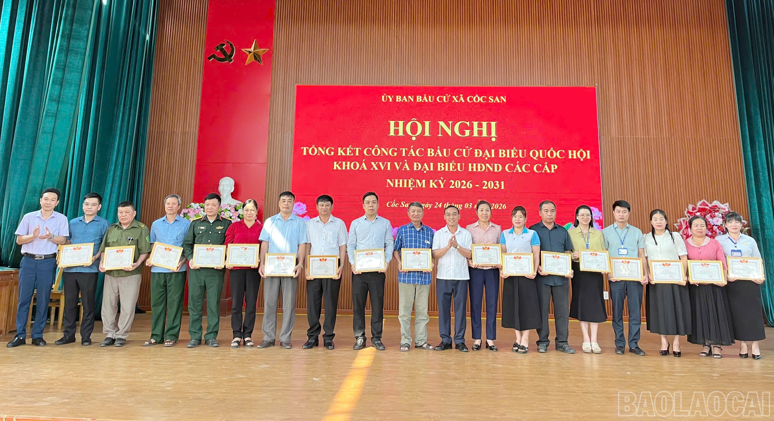 Dịp này, UBND xã Cốc San đã tổ chức khen thưởng cho 16 tập thể và 50 cá nhân có thành tích xuất sắc trong công tác tổ chức bầu cử.