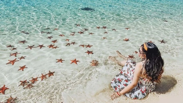 Được đánh là bãi biển đẹp nhất tại đảo ngọc, bãi tắm Sao biển Phú Quốc chính là điểm đến đầu tiên mà bạn không nên bỏ lỡ. Cách trung tâm phường chỉ tầm 25km, nơi này có khung cảnh vô cùng hoàn mỹ với những bãi cát dài hình cong lưỡi liềm vô cùng ấn tượng. Không chỉ vậy, Bãi Sao vẫn còn khá hoang sơ khi sở hữu những hàng dừa xanh mát ôm trọn ngọn núi nhỏ luôn vỗ sóng mỗi khi chiều xuống. Thế nên, có thể nói rằng thời điểm tuyệt nhất để khám phá nơi này chính là lúc buổi sớm mai đón bình minh hoặc buổi chiều tối ngắm hoàng hôn cực đẹp.