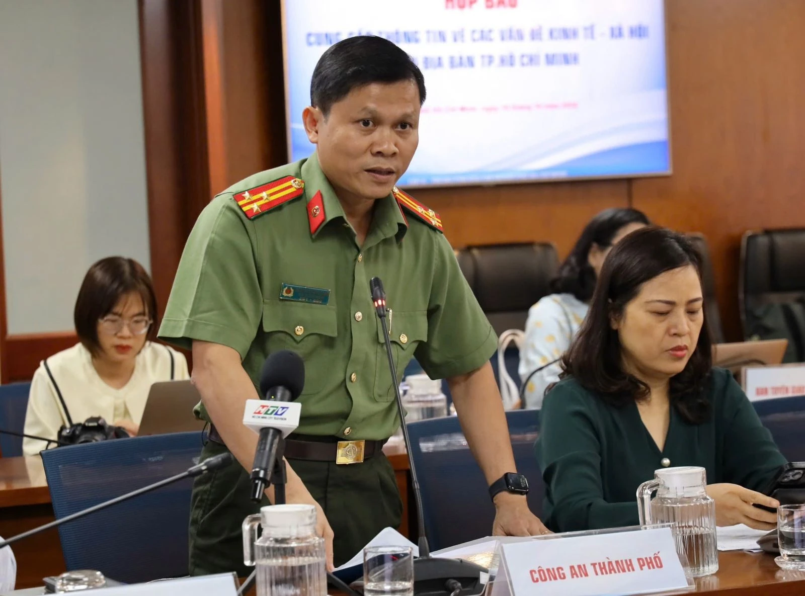 Thượng tá Nguyễn Thăng Long, Phó Trưởng phòng Tham mưu, Công an TP Hồ Chí Minh thông tin với báo chí chiều 10/10.