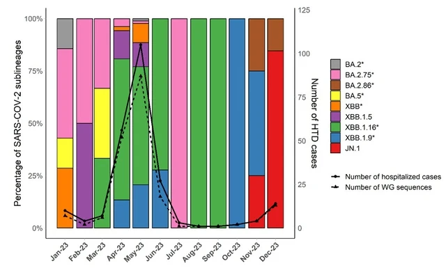 Như vậy biến thể phụ JN.1 cũng đã xuất hiện tại TPHCM sau khi CDC Hoa Kỳ báo cáo đây là biến thể đang phát triển nhanh nhất và chiếm ưu thế tại Mỹ trong tháng 12/2023.