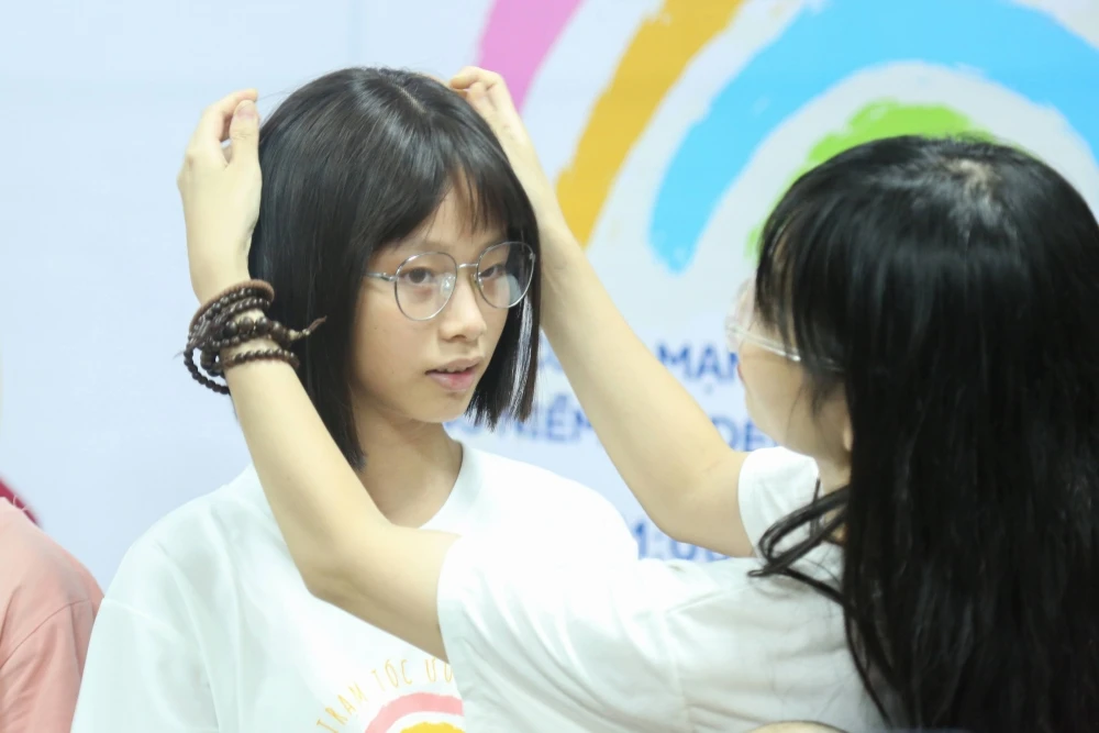 Sáng 8/10, Ngày hội hiến tóc “Trạm tóc ước mơ” của Mạng lưới Vì trẻ em ung thư đã diễn ra tại Viện Huyết học - Truyền máu Trung ương.