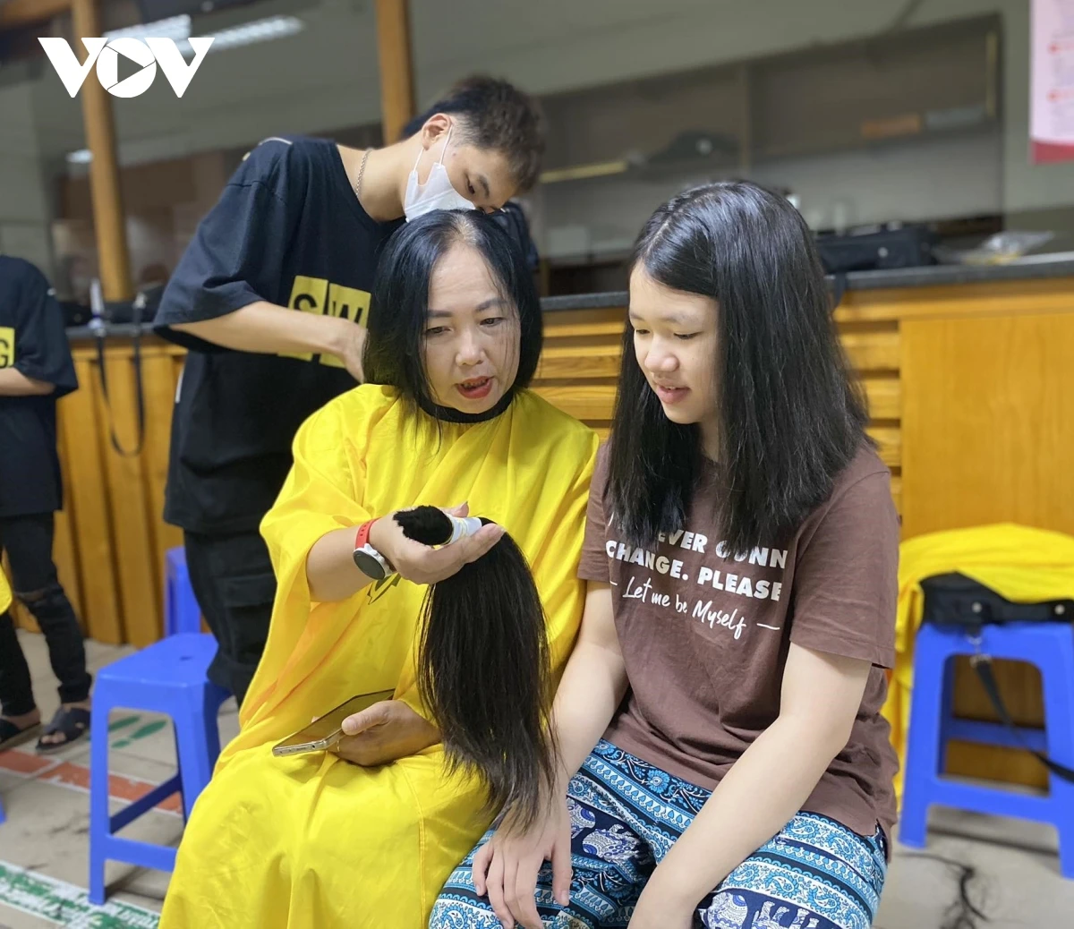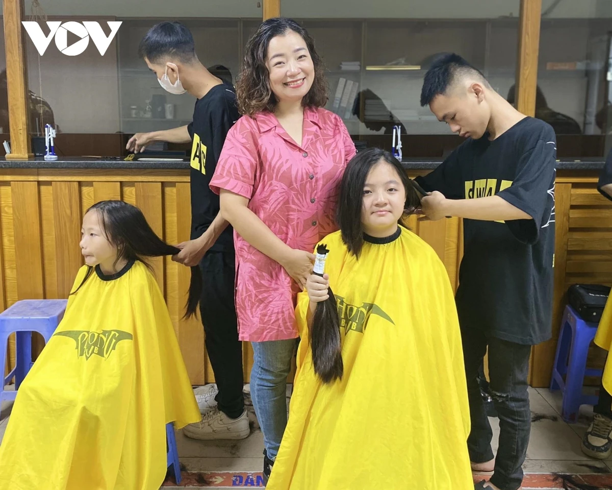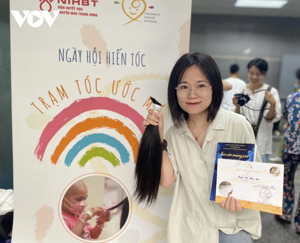 Chị Vũ Thị Thái Hà và con gái Bạch Vũ Cẩm Linh (13 tuổi, Mỹ Đình) cùng tham gia hiến tóc, cho biết chị thường xuyên hiến máu tại Viện Huyết học - Truyền máu Trung ương, nên theo dõi fanpage của Viện và biết được sự kiện hiến tóc này. Năm trước, chị Hà đã mang tóc cắt sẵn của con gái đi hiến tặng. Năm nay, khi có chương trình, chị đưa con tới để trực tiếp hiến tóc.