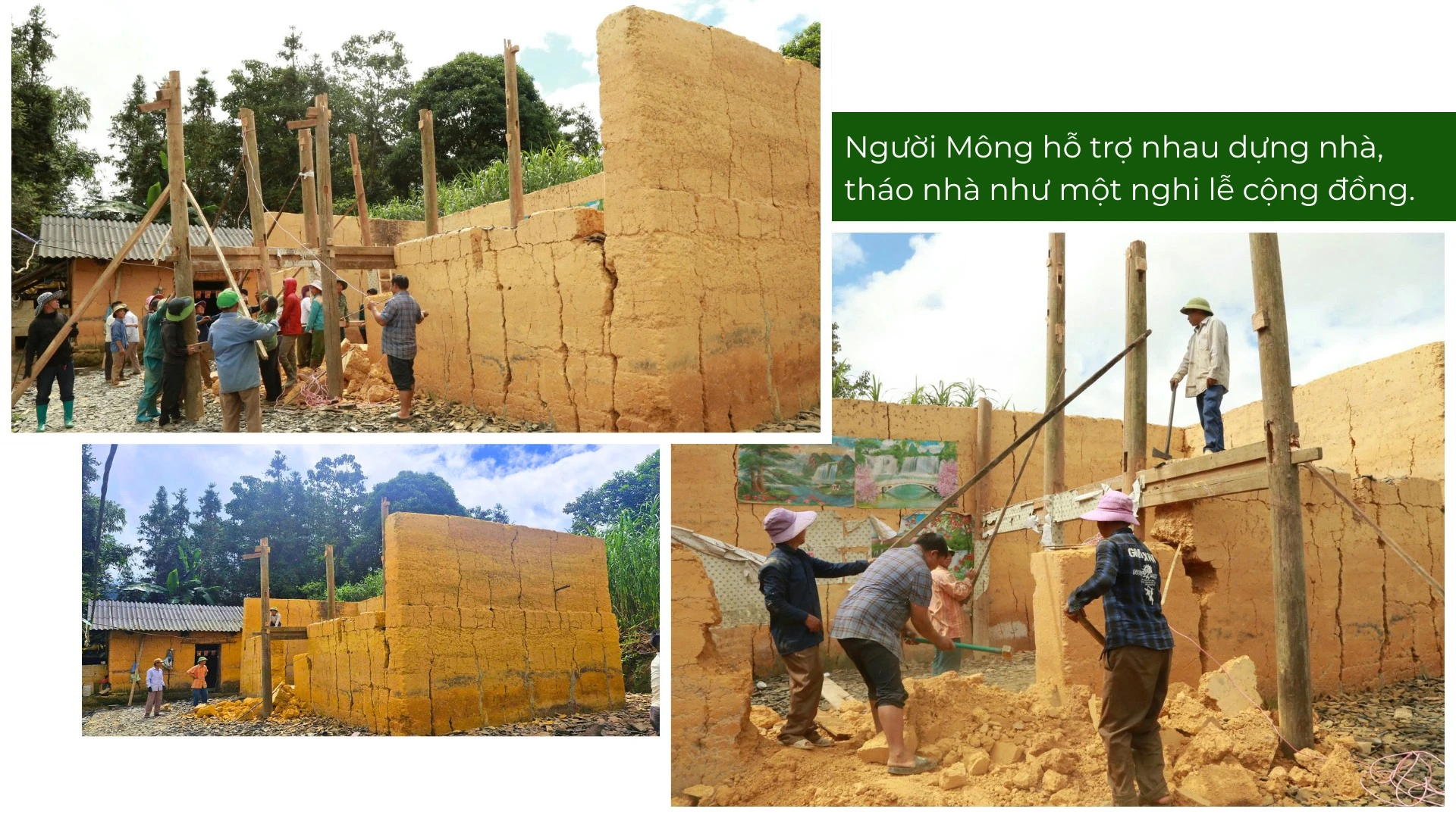 Đến thăm nhà ông Thào A Chô, thôn Sín Chải, chúng tôi gặp đúng hôm ông Chô nhờ bà con trong làng đến tháo dỡ nhà cũ, chuẩn bị xây nhà mới. Hàng chục trai tráng, phụ nữ trong thôn cùng dọn đồ đạc, dỡ mái ngói âm dương, đập tường, khiêng khung gỗ… chẳng mấy chốc, căn nhà tường đất rộng rãi đã bị dỡ bỏ.