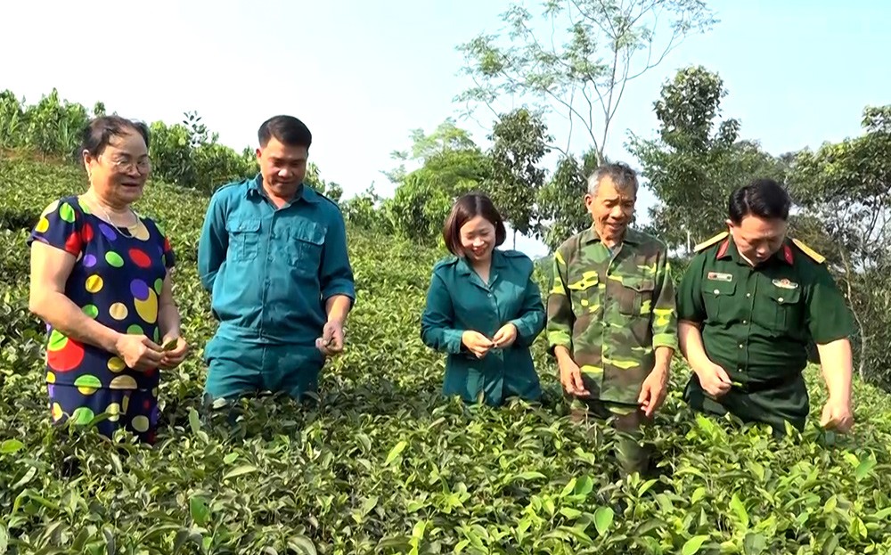 Lãnh đạo Ban Chỉ huy Quân sự huyện Trấn Yên tham quan mô hình phát triển kinh tế của lực lượng dân quân tự về tại địa phương.