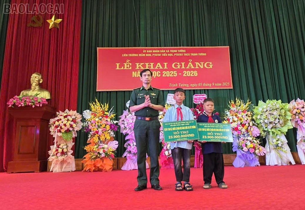 Ngày 05/9, nhân dịp khai giảng năm học mới 2025 – 2026, các đồn biên phòng thuộc Ban Chỉ huy Bộ đội Biên phòng tỉnh Lào Cai đã tổ chức trao hỗ trợ kinh phí cho các học sinh thuộc Dự án “Cán bộ, chiến sĩ quân đội nâng bước em đến trường”.