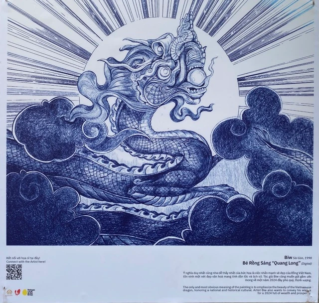 Tác phẩm “Bé Rồng Sáng Quang Long” của tác giả Biw, với ý nghĩa nhấn mạnh vẻ đẹp của rồng Việt Nam, tôn vinh một nét đẹp văn hóa mang tính dân tộc và lịch sử, gắn với ước vọng về một năm mới 2024 đầy phú quý và thịnh vượng