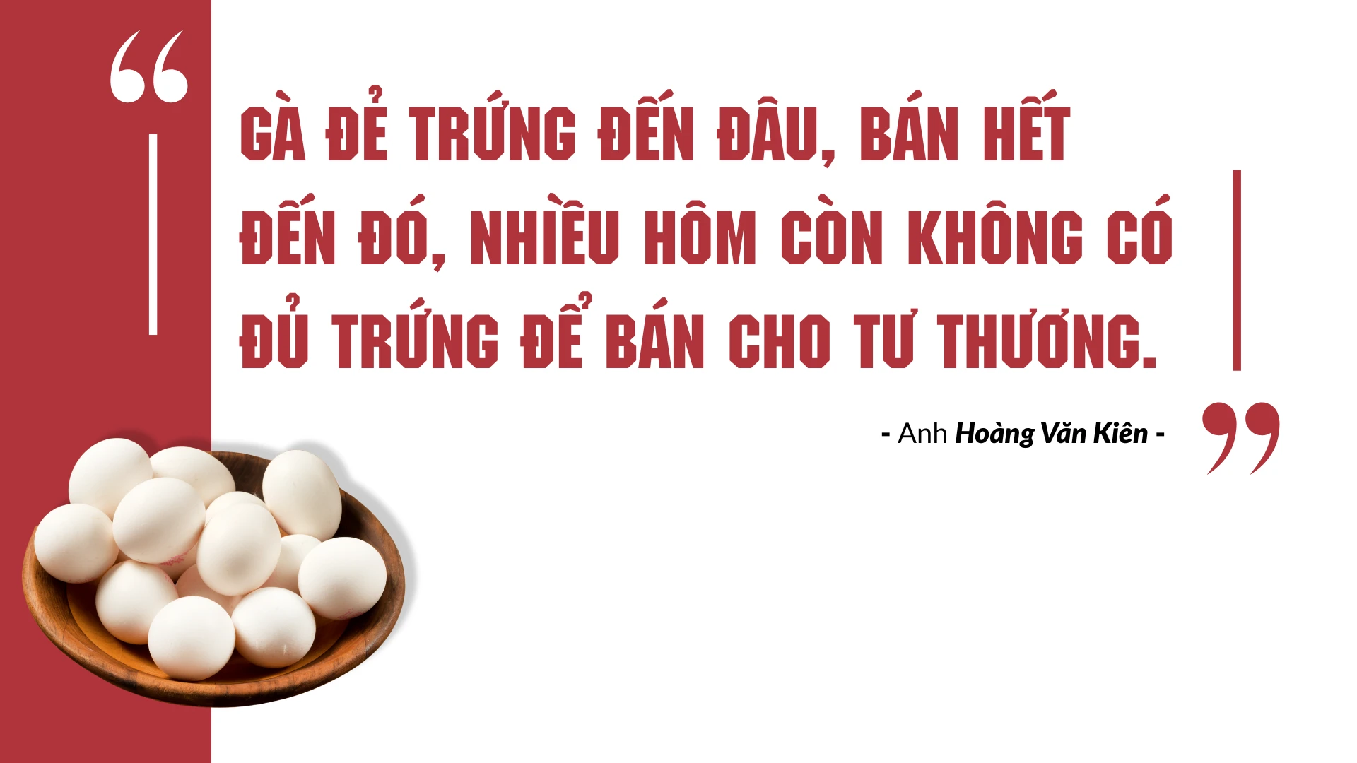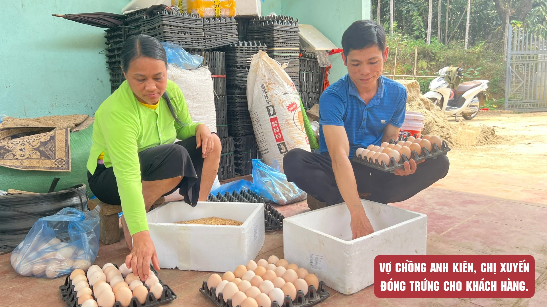 Lứa đầu, gia đình đầu tư chuồng trại và nuôi 900 con gà. Khi gà giống được đưa về, anh Kiên cẩn thận chuẩn bị khu úm với đèn sưởi, rải trấu dày để giữ ấm. Những ngày đầu, anh và vợ thay nhau chăm sóc, đảm bảo nhiệt độ chuồng luôn ổn định, thức ăn đủ chất để gà phát triển khỏe mạnh. Đến khi đàn gà lớn hơn, gia đình tiêm phòng đầy đủ các loại vắc-xin để phòng bệnh thường gặp. Thức ăn và liều lượng cho ăn đối với từng độ tuổi của gà được thực hiện theo hướng dẫn để gà luôn khỏe mạnh, trứng đạt chất lượng tốt nhất. Sau 7 tháng nuôi, gà bắt đầu đẻ trứng, mỗi ngày, nhìn những quả trứng tròn to, sáng bóng, anh chị thêm tự tin với mô hình chăn nuôi mới này.
