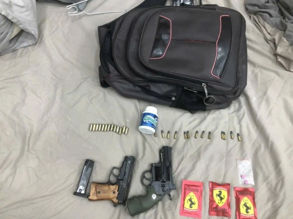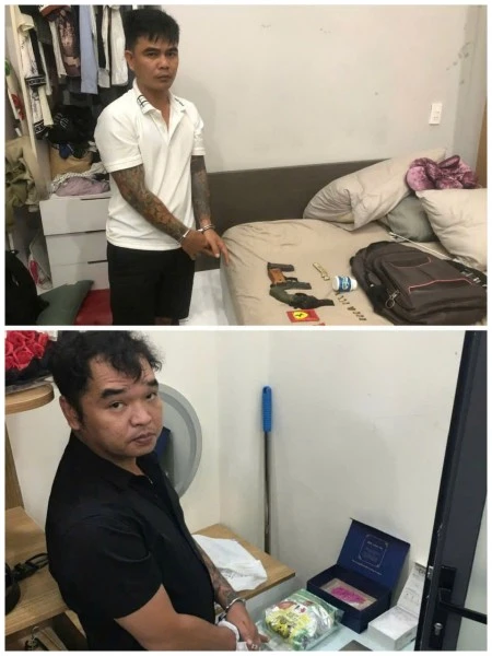 Mở rộng truy xét, trưa 15/9, lực lượng chức năng kiểm tra phòng VIP 5, khách sạn K. ở huyện Bến Lức, nơi Nguyễn Thanh Phương (SN 1984) trú ngụ, phát hiện trong ba lô của Phương có 2 viên thuốc lắc, 3 gói nylon màu đỏ có ghi chữ “Ferrari” chứa chất bột có khối lượng 20,1827 gram, 2 khẩu súng ngắn và 26 viên đạn các loại.