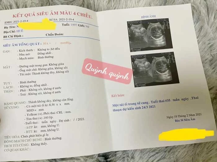 Giấy khám thai của một trường hợp mang thai hộ vì mục đích thương mại.