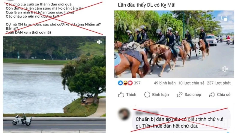 Phòng PA05 Công an tỉnh Lâm Đồng tiếp tục phát hiện, làm việc với quản trị viên của các trang, hội nhóm cộng đồng lớn tại địa phương, gồm bà T.H (sinh năm 1982, trú phường 6, Đà Lạt; quản trị trang “I.Q.O.S Đà Lạt”), có hành vi đăng tải thông tin sai sự thật về hoạt động của Trung đoàn Cảnh sát Cơ động Kỵ binh Công an nhân dân là “dịch vụ cưỡi ngựa ngắm hồ Xuân Hương…”; ông M.Đ (sinh năm 1991, trú phường 4, Đà Lạt; đồng quản trị trang “Thông Tin Đà Lạt”) và quản trị viên các nhóm Facebook khác, như “Người Đà Lạt”, “Đà Lạt ReView Tất Tần Tật”… có hành vi buông lỏng, không kiểm duyệt nội dung, phê duyệt cho người theo dõi đăng tải các tin, bài, bình luận có nội dung sai sự thật, vi phạm pháp luật trên trang do bản thân quản trị, điều hành.
