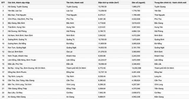Dự thảo đã nêu phương án sắp xếp đối với 52 đơn vị hành chính cấp tỉnh để hình thành 23 đơn vị hành chính cấp tỉnh mới, như sau: