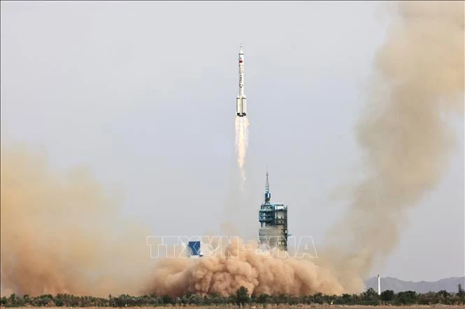 Tên lửa đẩy Trường Chinh-2F mang theo tàu vũ trụ Thần Châu-16 rời bệ phóng tại Trung tâm phóng vệ tinh Tửu Tuyền ở Tây Bắc Trung Quốc ngày 30/5/2023.