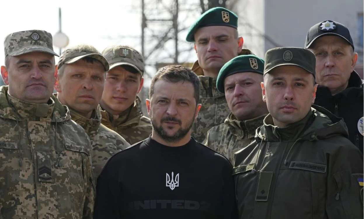 Tổng thống Ukraine Volodymyr Zelensky và các sĩ quan quân đội.