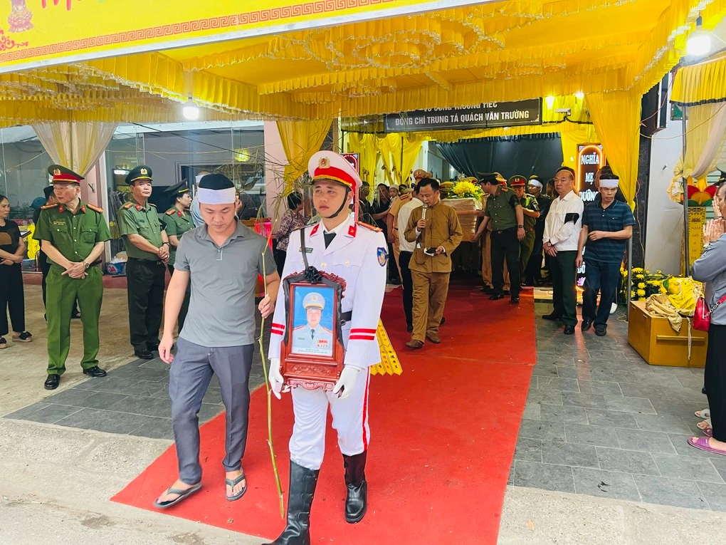 Lúc 6h30 ngày 17/4, Công an tỉnh Lào Cai đã tổ chức trọng thể lễ truy điệu Trung tá Quách Văn Trường tại nhà riêng theo nghi lễ Công an nhân dân.