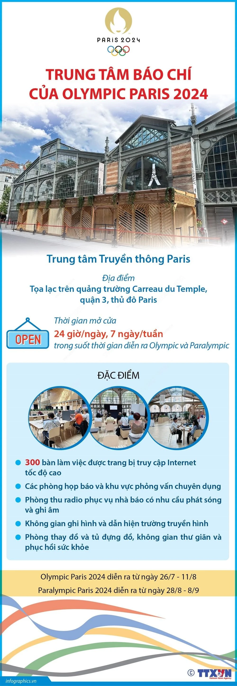 Vào dịp diễn ra Thế vận hội Mùa hè (Olympic) Paris 2024 và Thế vận hội Người khuyết tật mùa Hè (Paralympic) Paris 2024, thủ đô Paris đón khoảng 30.000 nhà báo đến từ các cơ quan thông tấn báo chí trên toàn thế giới.
