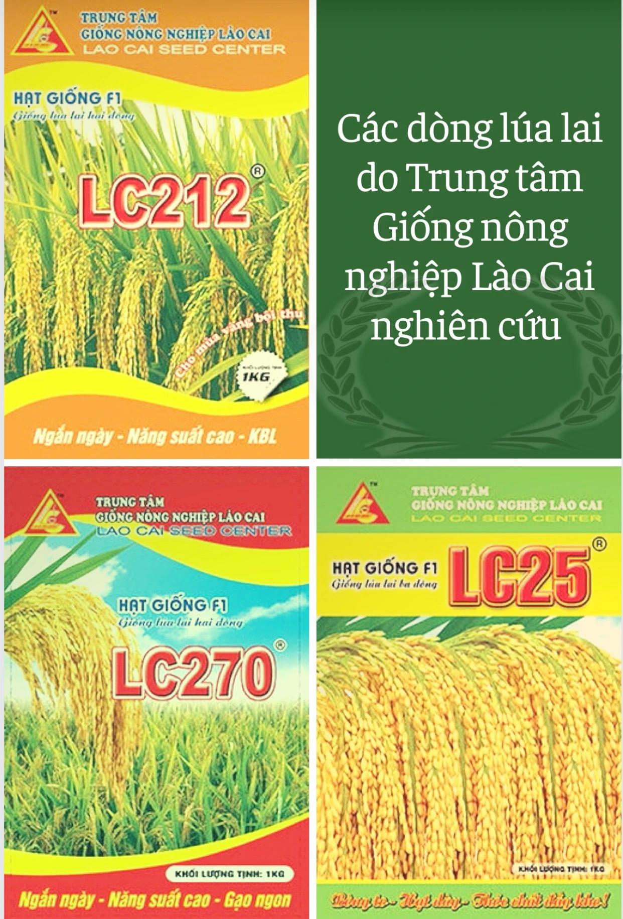 Không bằng lòng với thành công đạt được, Trung tâm Giống nông nghiệp Lào Cai tiếp tục hợp tác với các nhà khoa học trong nước tiếp tục nghiên cứu, sản xuất các giống lúa lai khác. Sở hữu giống quốc gia LC25 đã giúp Trung tâm Giống nông nghiệp Lào Cai có lợi thế để nhận được sự hợp tác của Phó Giáo sư - Tiến sỹ Nguyễn Văn Hoan, Giám đốc Viện Nghiên cứu lúa (Học viện Nông nghiệp Việt Nam) - một trong những người đầu tiên nghiên cứu lúa lai. Được Phó Giáo sư - Tiến sỹ Nguyễn Văn Hoan chọn dòng mẹ 103S, Trung tâm Giống nông nghiệp Lào Cai đã nghiên cứu, lai tạo, sản xuất được giống lúa lai 2 dòng mang thương hiệu LC270, LC212 và năm 2009 đều được công nhận là giống quốc gia. Cũng từ thời điểm này, cả nước chỉ duy nhất Lào Cai có trung tâm sản xuất giống lúa lai cấp tỉnh.