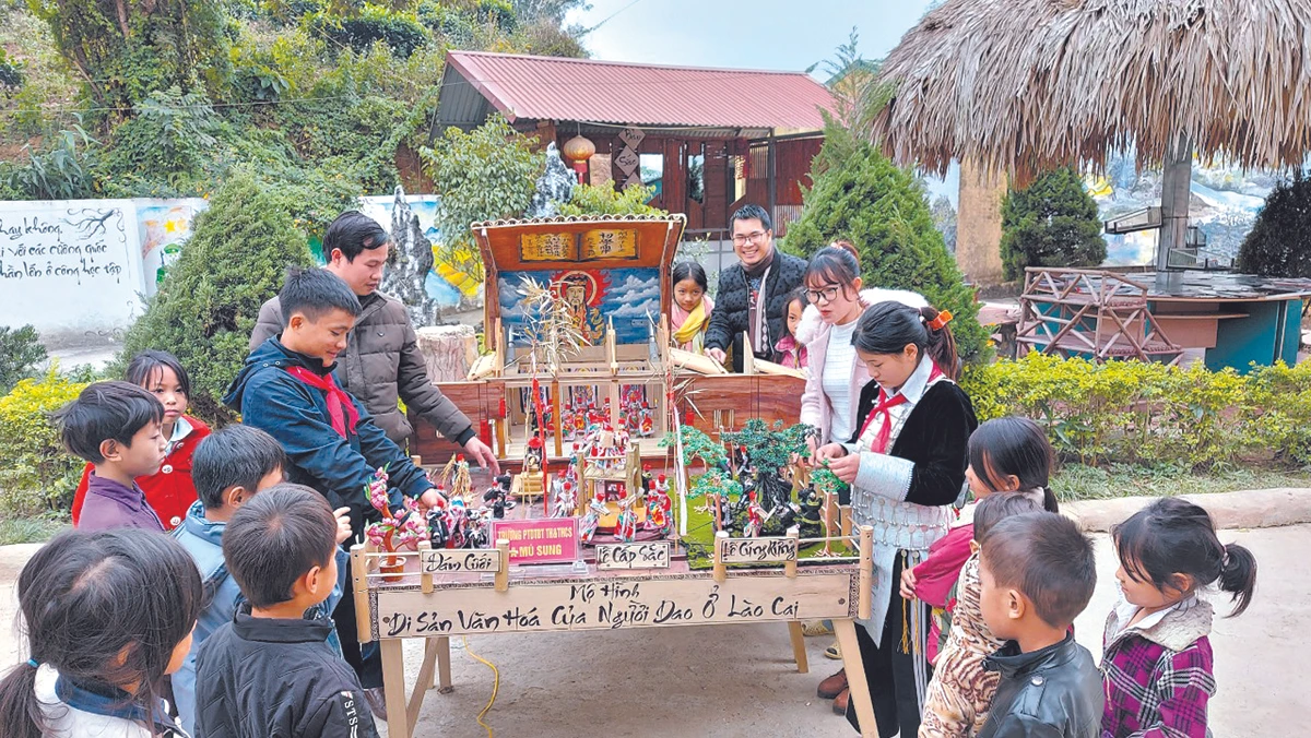 Mô hình "Di sản văn hóa dân tộc Dao ở Lào Cai" của học sinh Trường PTDTBT Tiểu học và THCS A Mú Sung.