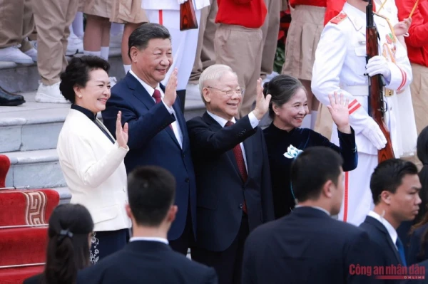 Tổng Bí thư Nguyễn Phú Trọng và Phu nhân chủ trì Lễ đón Tổng Bí thư, Chủ tịch nước Trung Quốc Tập Cận Bình và Phu nhân.