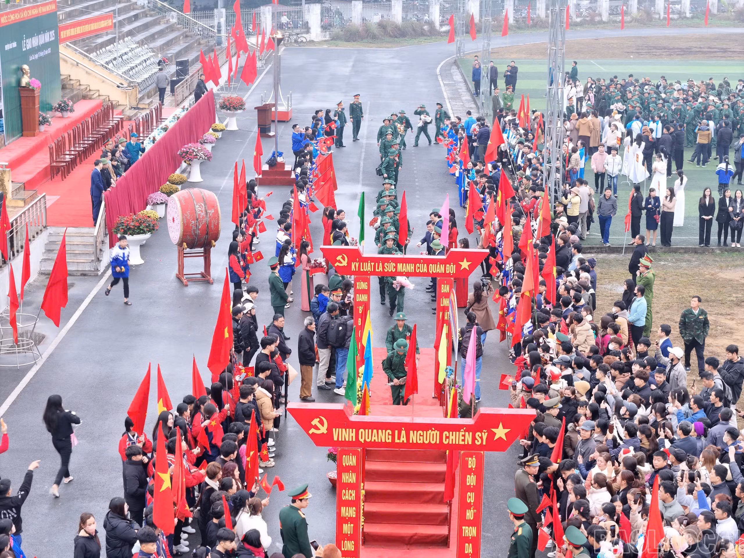 Tại buổi lễ, lãnh đạo huyện đã thắp lửa truyền thống, đánh trống giao quân và phát biểu biểu dương sự nỗ lực, phấn đấu của các cấp, các ngành nghiêm túc thực hiện đúng quy trình tuyển chọn, gọi công dân nhập ngũ, ghi nhận và biểu dương tinh thần trách nhiệm của các thanh niên và các gia đình có công dân chuẩn bị lên đường làm nhiệm vụ bảo vệ Tổ quốc đồng thời đề nghị các tân binh cần phát huy truyền thống của gia đình, quê hương Văn Bàn anh hùng, xây dựng bản lĩnh chính trị vững vàng, tích cực khắc phục mọi khó khăn, nhanh chóng hòa nhập với môi trường Quân đội, Công an; không ngừng tu dưỡng học tập, phấn đấu; hết lòng, hết sức phụng sự Tổ quốc, phục vụ Nhân dân, sẵn sàng nhận và hoàn thành tốt mọi nhiệm vụ được giao.