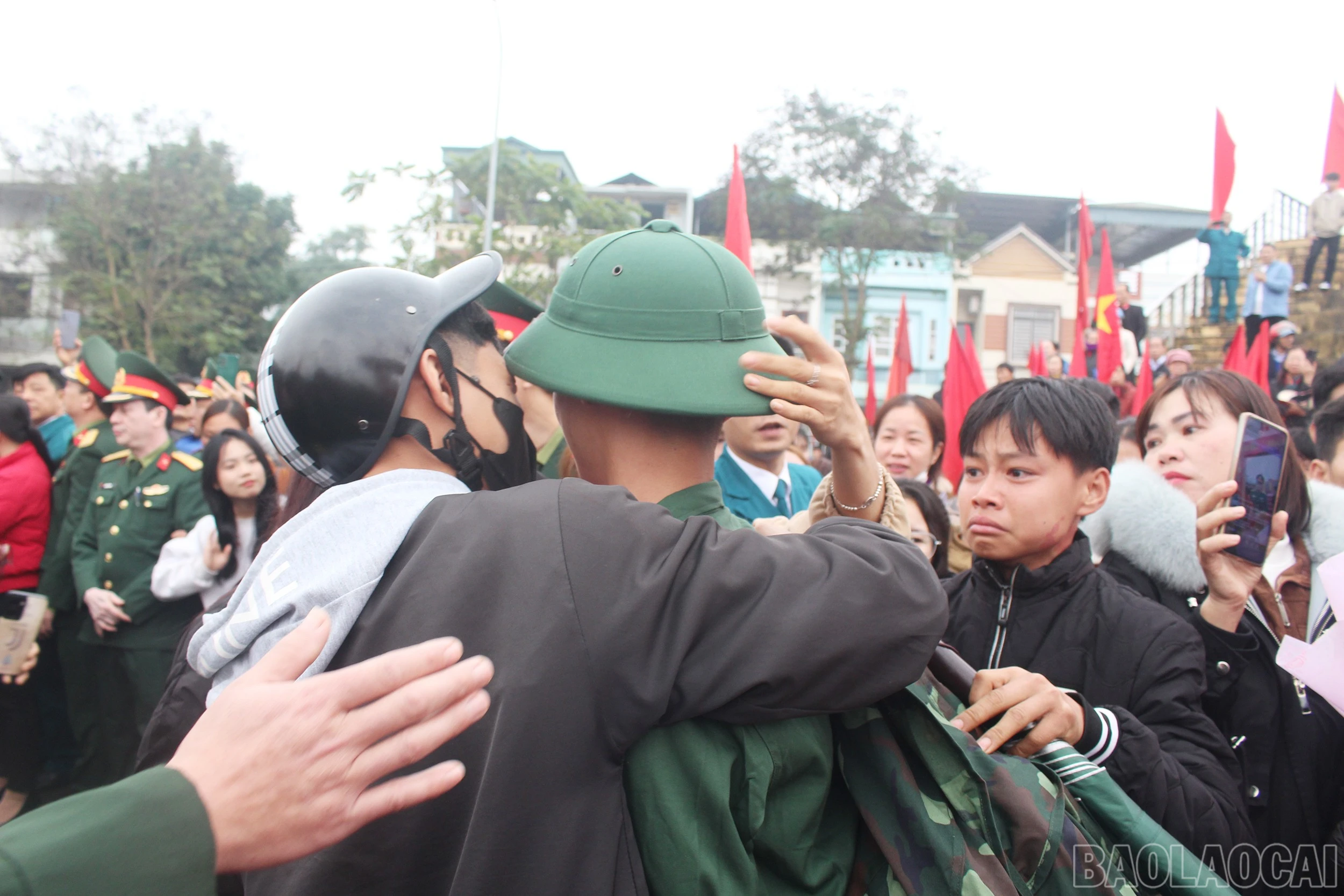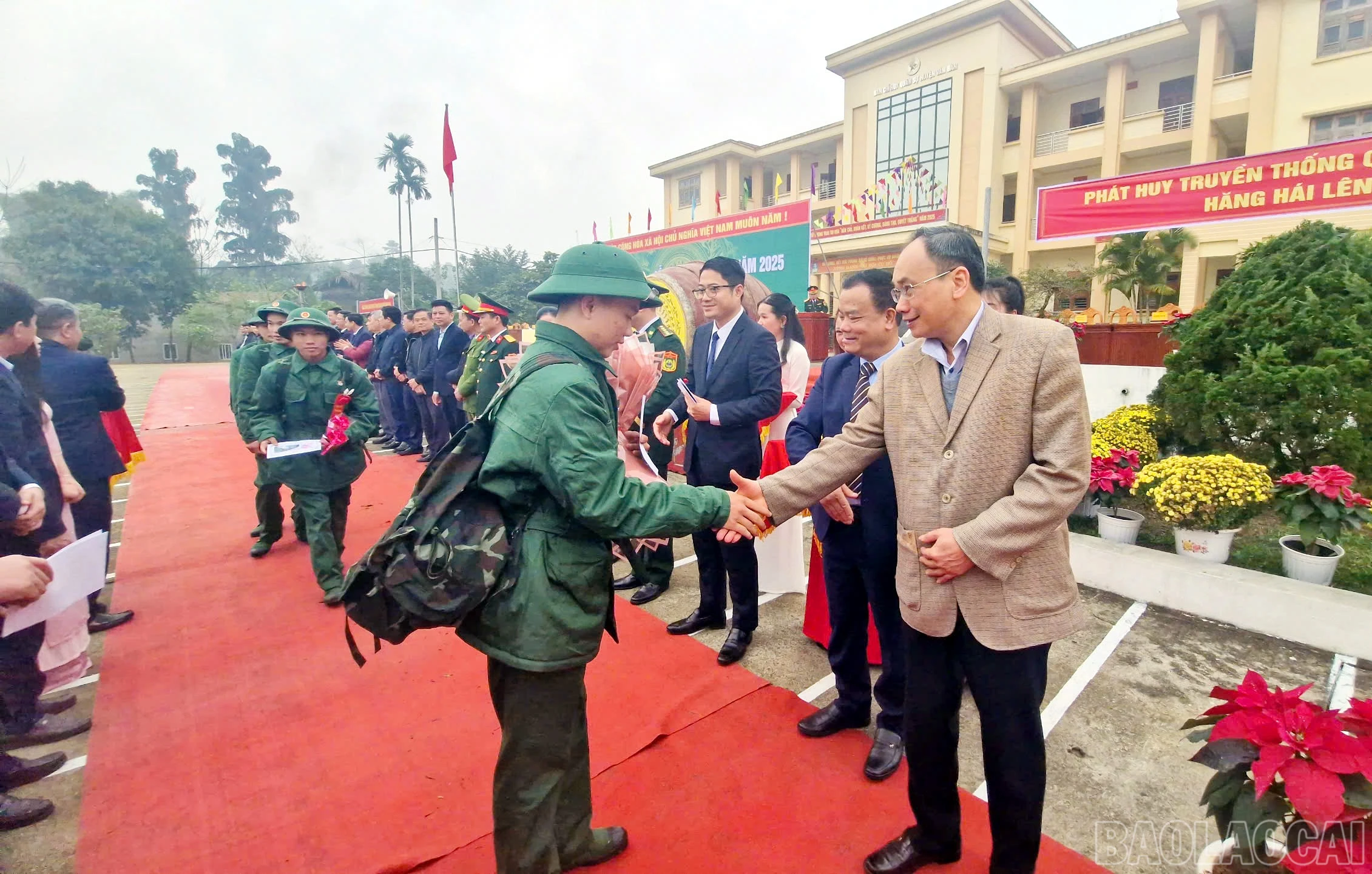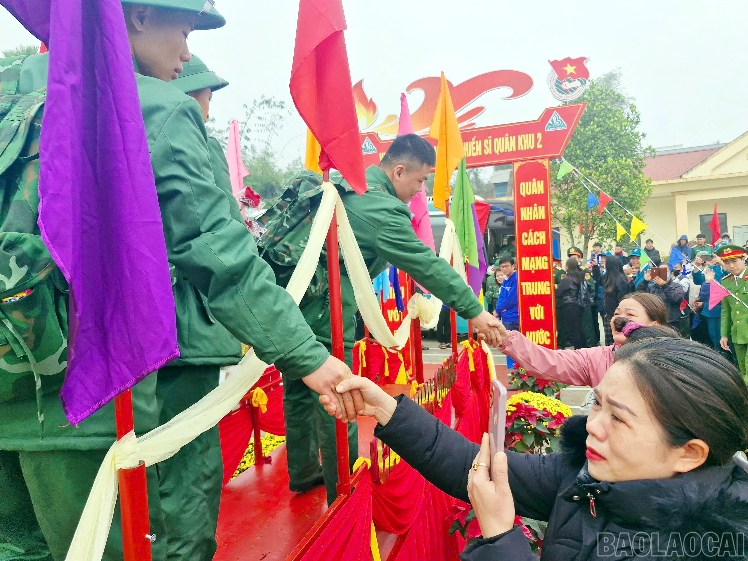 * Tại huyện Bảo Yên, dự lễ giao nhận quân có đại diện lãnh đạo Bộ Chỉ huy Quân sự tỉnh, Hội Liên hiệp Phụ nữ tỉnh; lãnh đạo các đơn vị nhận quân; lãnh đạo cấp ủy đảng, chính quyền địa phương và đông đảo thân nhân, người dân trên địa bàn.